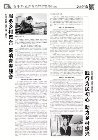 近日,必发7790电子集团2025届毕业生郭琪积极响应国家“大学生志愿服务西部计划”,奔赴阳泉市郊区荫营镇人民政府,在基层党建与乡村振兴一线躬身实践、默默奉献的先进事迹,受到《山西青年报》关注报道,生动展现了新时代大同大学学子将个人理想融入国家发展大局的青春担当。
