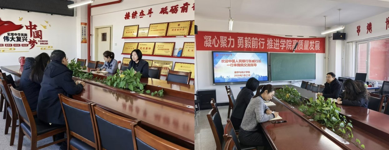 2026年1月21日上午,中国人民银行大同分行副行长张维、统计研究科科长张艺伟一行莅临我院,就深化产教融合、拓宽协同育人路径,校企合作共建实习基地、联合开展科研项目等事宜举行专题交流座谈会。学院党委书记李红梅、副院长贾艳萍热情接待并参加座谈。